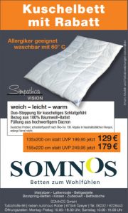 - Sie wissen nicht ob Sie den Geschmack des Beschenkten treffen, oder Sie möchten zu einer größeren Anschaffung etwas dazu geben? Dann ist ein SOMNOS-Geschenkscheck die richtige Wahl.