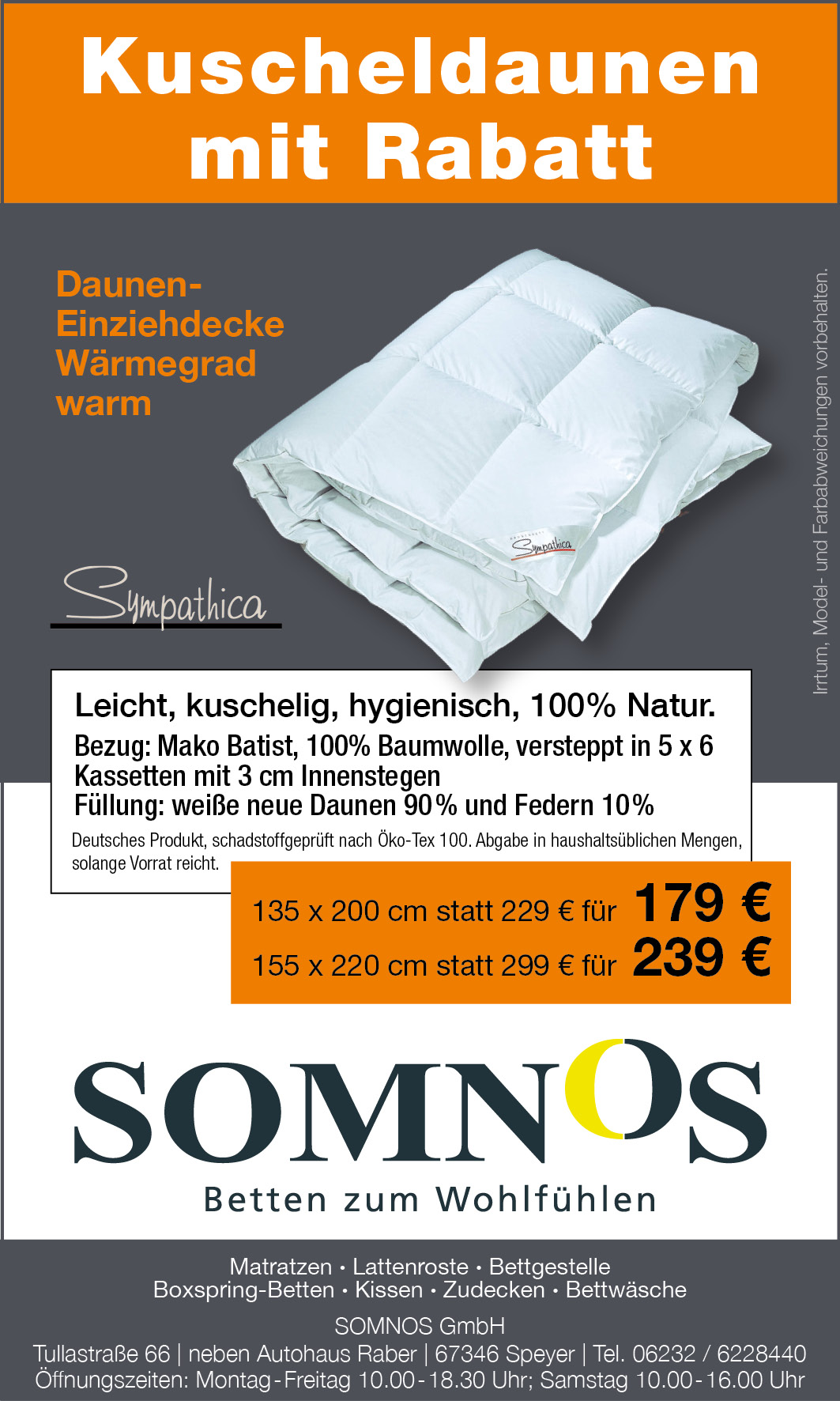 Wir freuen uns auf Ihren Besuch bei „SOMNOS – Betten zum Wohlfühlen“ in Speyer.