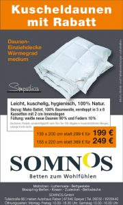 - Sie wissen nicht ob Sie den Geschmack des Beschenkten treffen, oder Sie möchten zu einer größeren Anschaffung etwas dazu geben? Dann ist ein SOMNOS-Geschenkscheck die richtige Wahl.